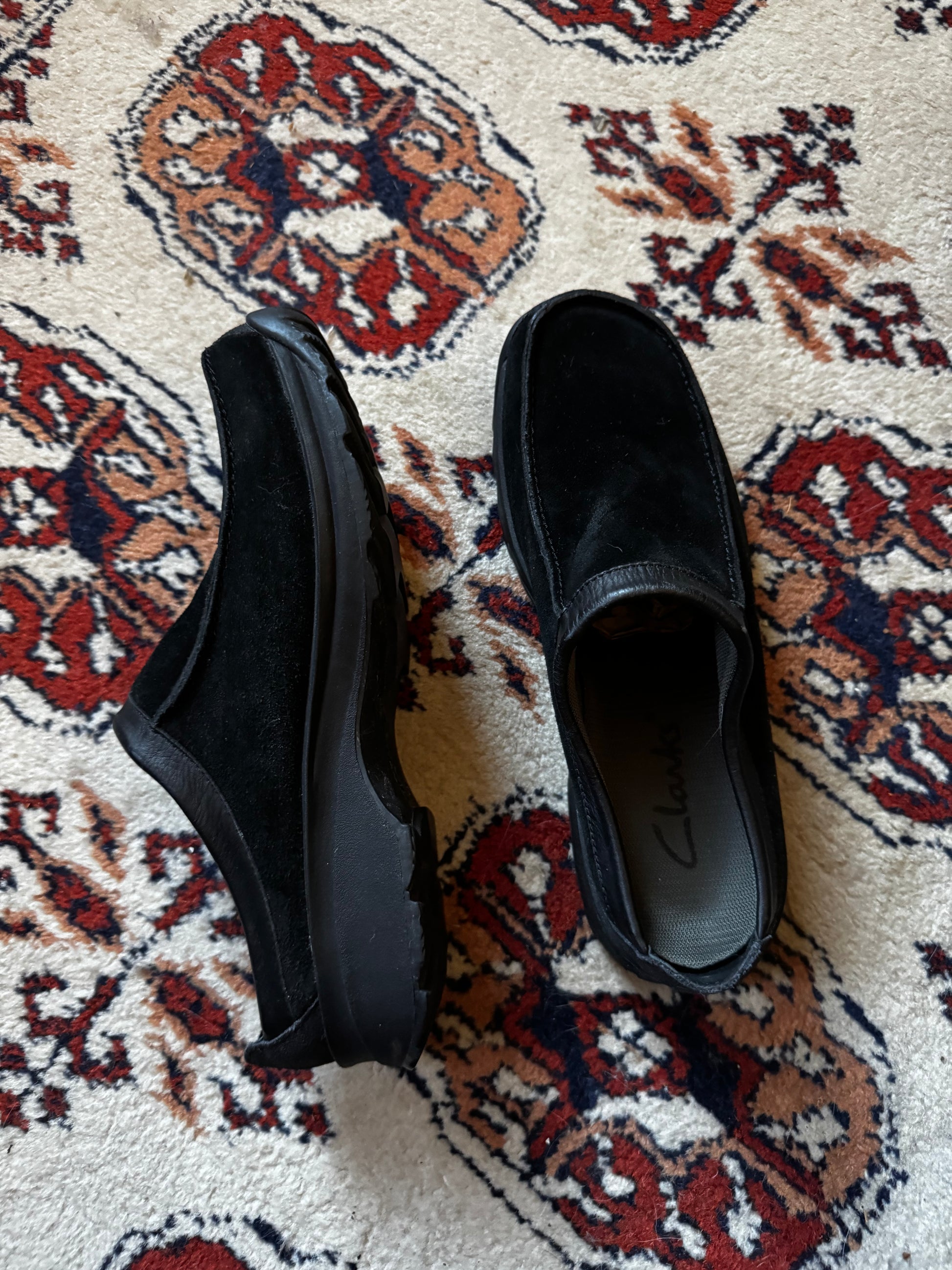 Vintage 90s Clarks Black Suede Wallabee Slip Ons (9/9.5)