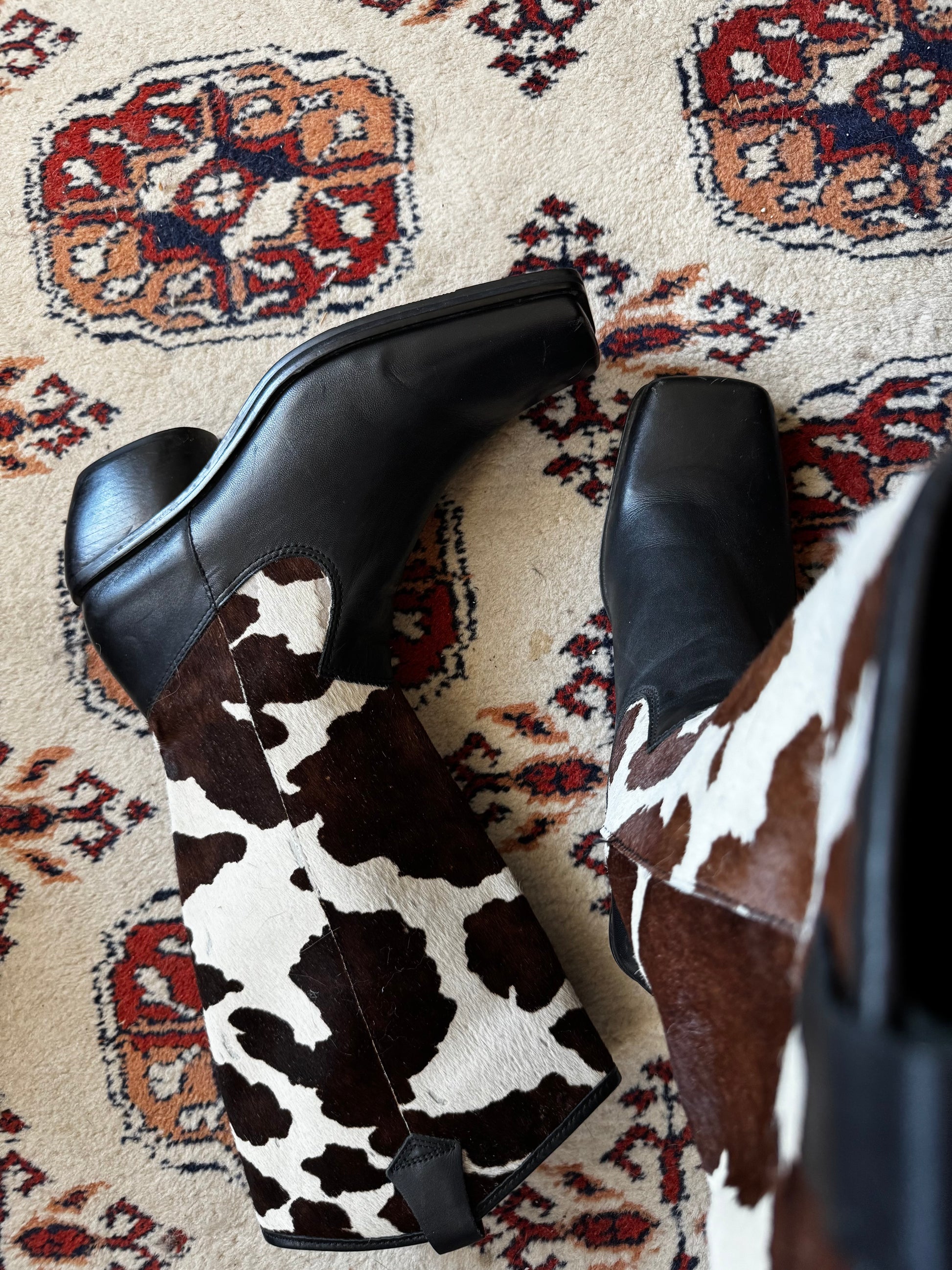 Vintage 90s Cow Print Pony Hair Knee High Boots (9)
